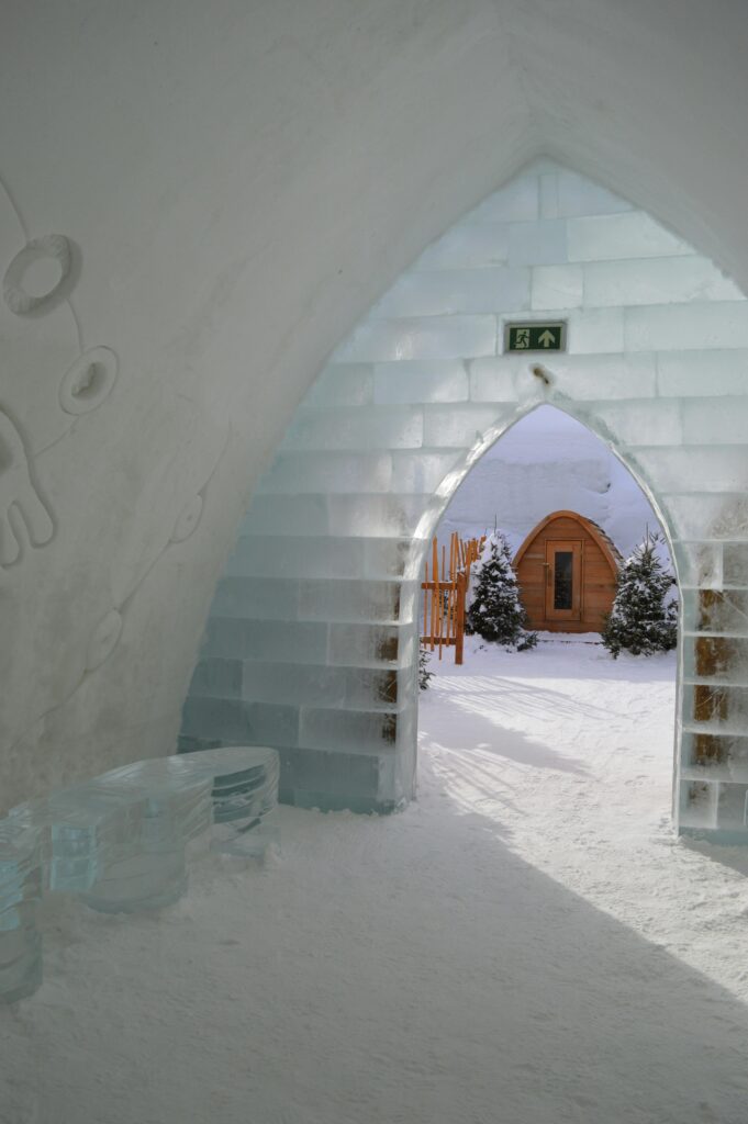 The room itself was simple: a bed built from blocks of ice, covered in reindeer hides and topped with a thermal sleeping bag. Cold, yes, but also strangely cosy. Once you zipped yourself in, it felt like the safest cocoon.